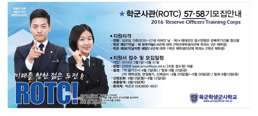 2016년도 학군사관(ROTC) 57·58기 모집안내입니다.