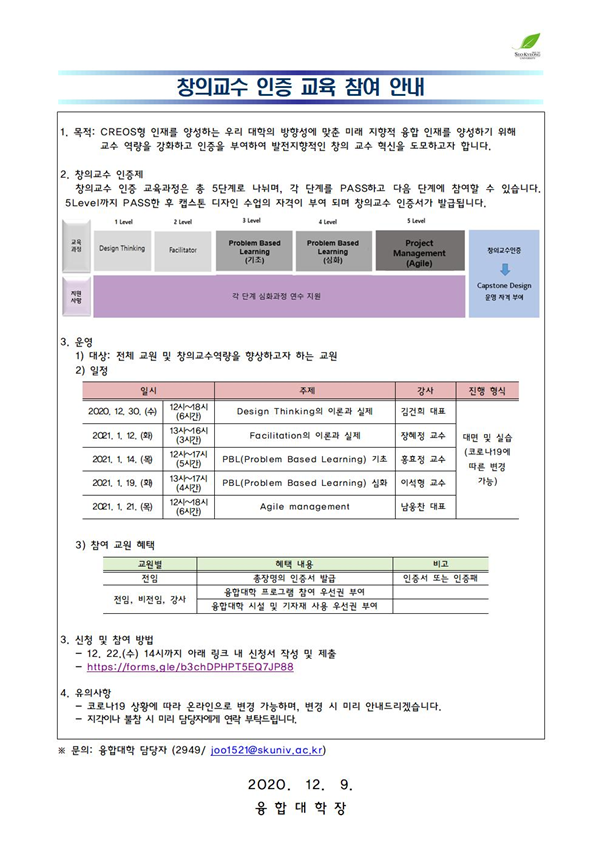 공지사항 전체공지 일반공지 학사공지 장학공지 진로취업공지 행사안내 대외활동 등록·납부 채용공지 서경 TODAY 서경 TODAY FAQ 전체 FAQ 일반 FAQ 교무학적 FAQ 장학 FAQ IT FAQ 자료실 전체 자료실 일반 자료실 교무학적 자료실 장학 자료실 IT 자료실 개인정보공지 전체 개인정보공지 개인정보보호공지 개인정보위수탁업체공지 개인정보제공내역공지 창의교수 인증제 교육 참여 안내 작성자융합대학 등록일2020-12-10 조회수10901 ▶신청서 링크: https://forms.gle/GrrHfwWYpvZU7vJx9 첨부파일 9277d8a2-1fa7-472e-a489-8970719dac92.png 목록