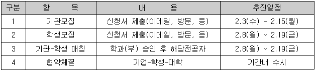 실습생 선발은 학과() 자체 선발로 진행될 수 있음.