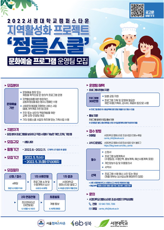 [캠퍼스타운] 2022년 서경대학교 캠퍼스타운 지역활성화 프로젝트 '정릉스쿨' 모집 안내