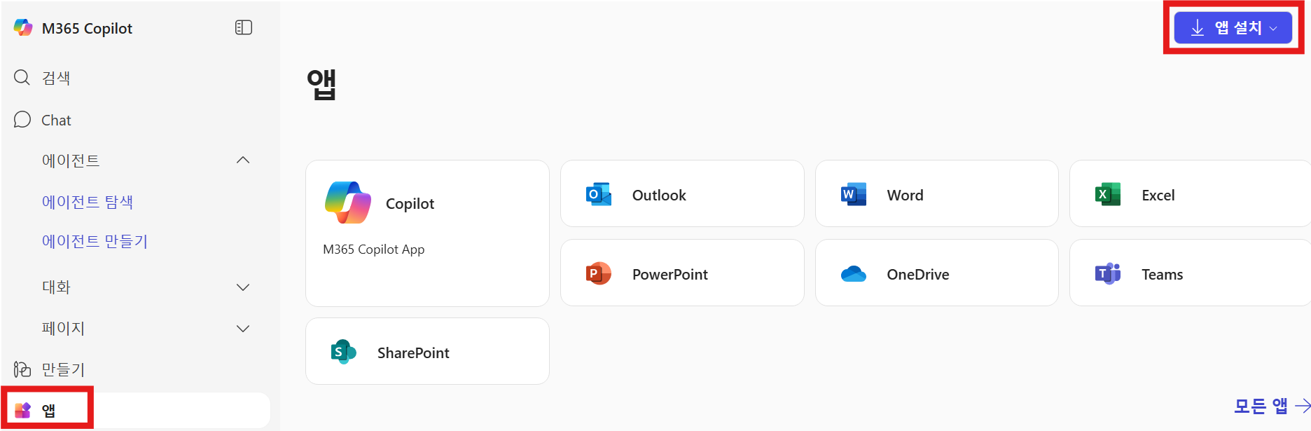 제공하는 앱 설치 : 앱 설치 > Microsoft 365 앱 > 다운로드된 OfficeSetup.exe 파일 실행