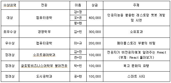 2022학년도 S-Learning Contest(프레젠테이션 뽐내기)를실시하고 다음과 같이 수상자를 발표합니다. 수상자 학생 모두 축하드립니다.
