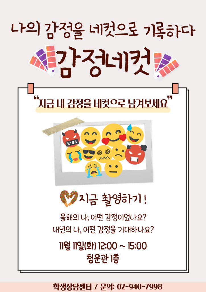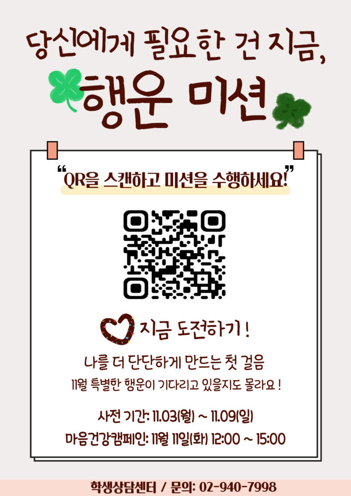 청운관 1층 캠페인 부스에 방문하여 마음을 점검하고 휴식하는 시간을 가져보시기 바랍니다.
