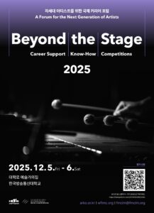 한국문화예술위원회는 문화체육관광부 산하 기관으로 국제콩쿠르세계연맹(WFIMC)과 공동으로 ‘비욘드 더 스테이지  2025:  차세대 아티스트를 위한 국제 커리어 포럼’을 개최하오니, 관심있는 분들의 많은 참여 바랍니다.