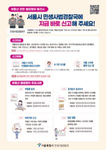 최근 대학가 학생들을 대상으로 하는 불법 부동산 범죄가 지속적으로 발생하고 있습니다. 이에 서울시에서 불법 부동산 범죄 수사를 강화하는 한편, 대학가 학생들의 범죄 피해 예방을 위한 홍보를 진행하고 있습니다. 아래 부동산 관련 범죄 신고 안내 리플릿 및 전단지를 참고하여 불법 행위 피해를 최소화하시길 바랍니다.