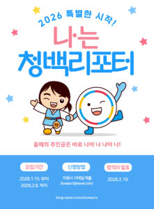 공지사항 전체공지 일반공지 학사공지 FYP공지 장학공지 진로취업공지 행사안내 대외활동 등록·납부 채용공지 서경 TODAY 서경 TODAY FAQ 전체 FAQ 일반 FAQ 교무학적 FAQ 장학 FAQ IT FAQ 자료실 전체 자료실 일반 자료실 교무학적 자료실 장학 자료실 IT 자료실 개인정보공지 전체 개인정보공지 개인정보보호공지 개인정보위수탁업체공지 개인정보제공내역공지 국민권익위원회「2026 청백리포터」모집 안내 작성자학생과 등록일2026-01-21 조회수75 진행중 2026-01-21 ~ 2026-02-08 국민권익위원회에서 정책기자단 <청백리포터>를 운영하고 있습니다. 정부 정책을 직접 경험하고 다양한 활동에 참여할 수 있는 기회를 휘망하는 학생은 붙임파일 내용을 참고한 후 참여해보시길 바랍니다. 붙임1. 모집이미지1. 붙임2. 모집이미지. 붙임3. 모집공고. 끝. 첨부파일 모집이미지1.jpg 모집이미지.jpg 2026 청백리포터 모집 공고.hwpx 목록