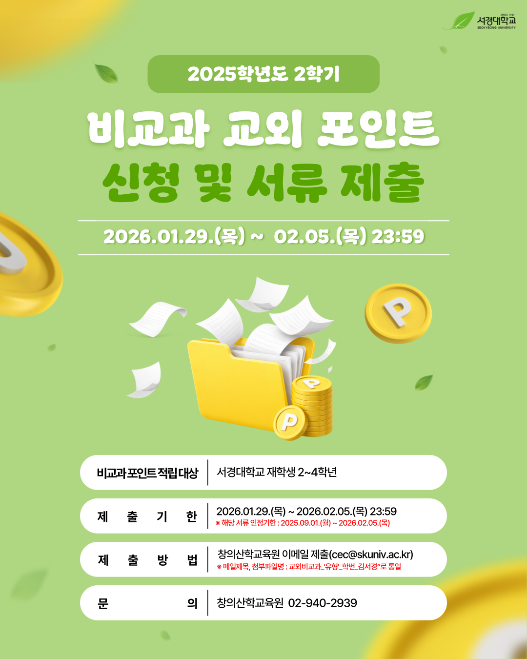 2025-2학기 비교과 교외 포인트 신청 및 서류 제출 안내
