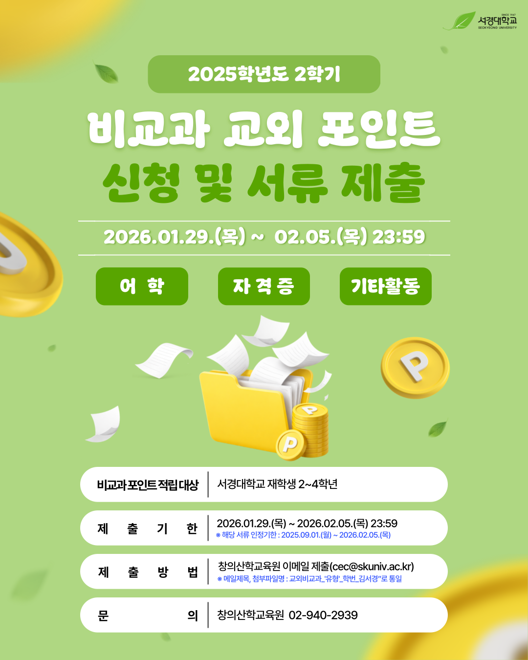 2025-2학기 비교과 교외 포인트 신청 및 서류 제출 안내