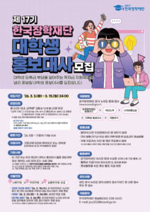 한국장학재단에서 매년 대학생 홍보대사를 선발 및 운영하고 있습니다. 2026년 한국장학재단 대학생 홍보대사를 신규 선발하고 있으니, 학생들의 관심 바랍니다.