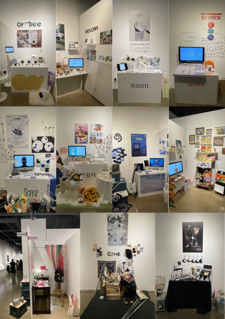 Orbee(강민승): 젊은 연령층 치매, 영츠하이머의 삶에서 느껴지는 정서적 공백을 메우고 기억을 지켜주는 반려로봇, REVOIR(김길호): 향(香)을 통해 특별한 순간을 다시 느낄 수 있는 브랜드, Suum(김다빈): 호흡의 리듬에서 영감을 얻은 아토피 및 민감성 피부 전문 코스메틱 브랜드, KEYPICK(김다현): 사람과의 연결을 쉽고 재미있게 만들어가기 위해 탄생한 브랜드, 센즈:SCENZ(김예진): 개인의 감각과 공간을 위한 맞춤형 방향제 디바이스 브랜드, 안쉼터(서밝음): 지하철 속 시민 모두를 위한 유니버설 디자인 쉼터 브랜드, The9(심지민): 밴드 The9 브랜딩 및 파도 뮤직비디오, 몬스터 해결사 덤불백작(이세아): ‘덤불 백작’이 사건을 추리하며 겪는 이야기를 담고 있는 베틀북 출판사에서 출간한 어린이 추리 동화시리즈, 마치마치(이예린): 말차라는 대체 카페인으로 보다 건강하고 지속 가능한 각성을 제안하는 말차 라이프스타일 브랜드, Gime(이지우): ‘우리를 움직이게 하는 도구’에서 출발한 패션 브랜드, SOMVEE(지유민): 잠의 신이 직접 창조한 수면의 공간으로 탄생한 브랜드 등 다양한 학생들의 작품을 선보였다.