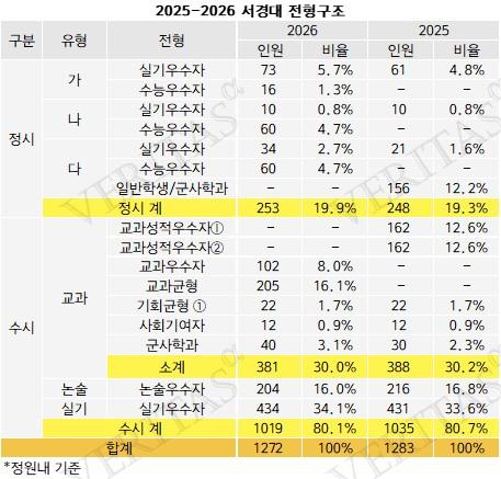 [2026정시특집] ‘실용 중심 명문 사립대’ 서경대 253명(19.9%).. 수능우수자 ‘신설’