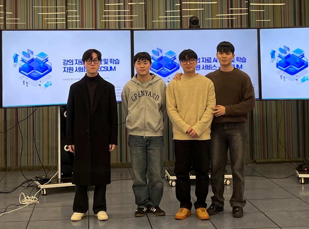 은상은 두 팀에게 돌아갔다. 첫 번째 은상은 강의자료 AI 요약 및 학습지원 서비스‘LECSUM’으로 김종혁·김찬호(소프트웨어학과 4학년, 서경SW아카데미 4기), 박주용·윤희준(소프트웨어학과 4학년)학생이 수상했다.