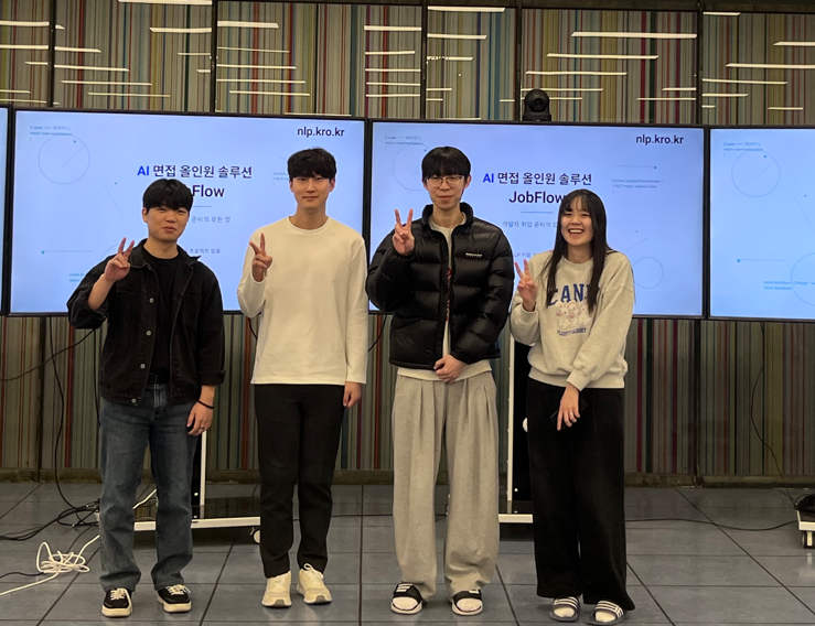 두 번째 은상은 AI면접 올인원 솔루션 ‘JobFlow’로, 윤정윤·김제형(소프트웨어학과 4학년, 서경SW아카데미 4기), 유동옥(소프트웨어학과 4학년), 이예빈(소프트웨어학과 3학년) 학생이 수상했다.