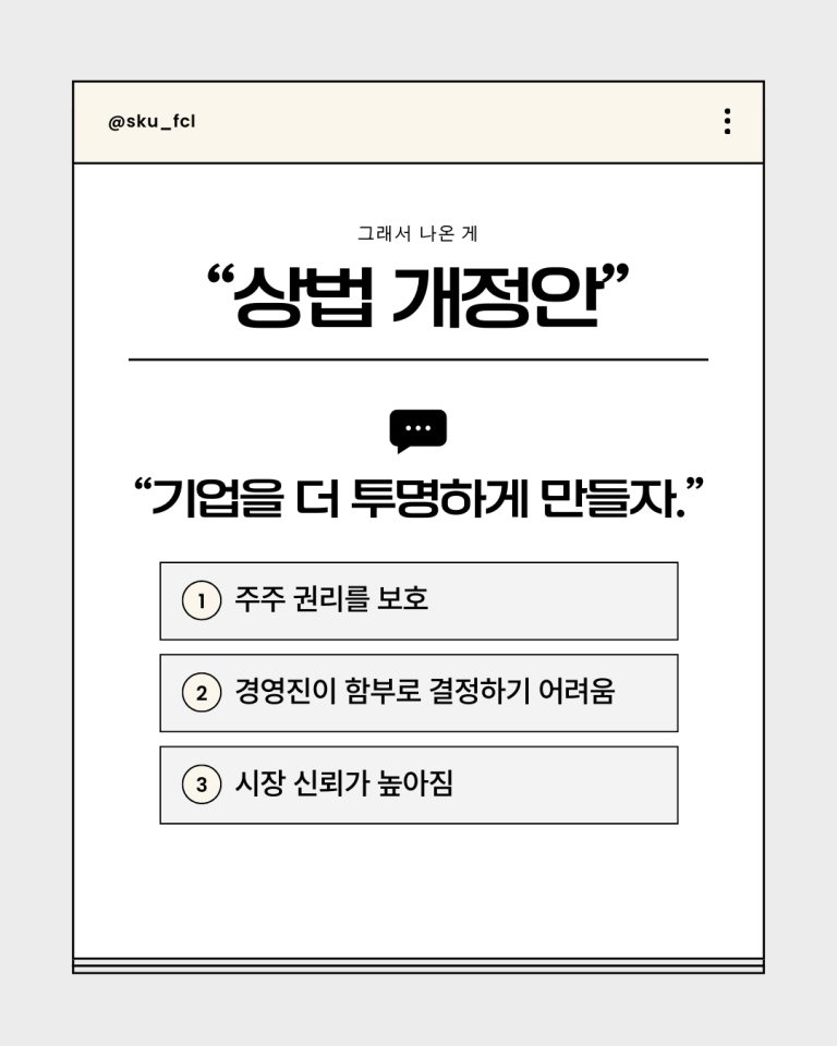 서경대 금융소비자연구회 (FCL), 국장으로 다시 돌아와도 될까? ‘상법개정안’ 읽어보기