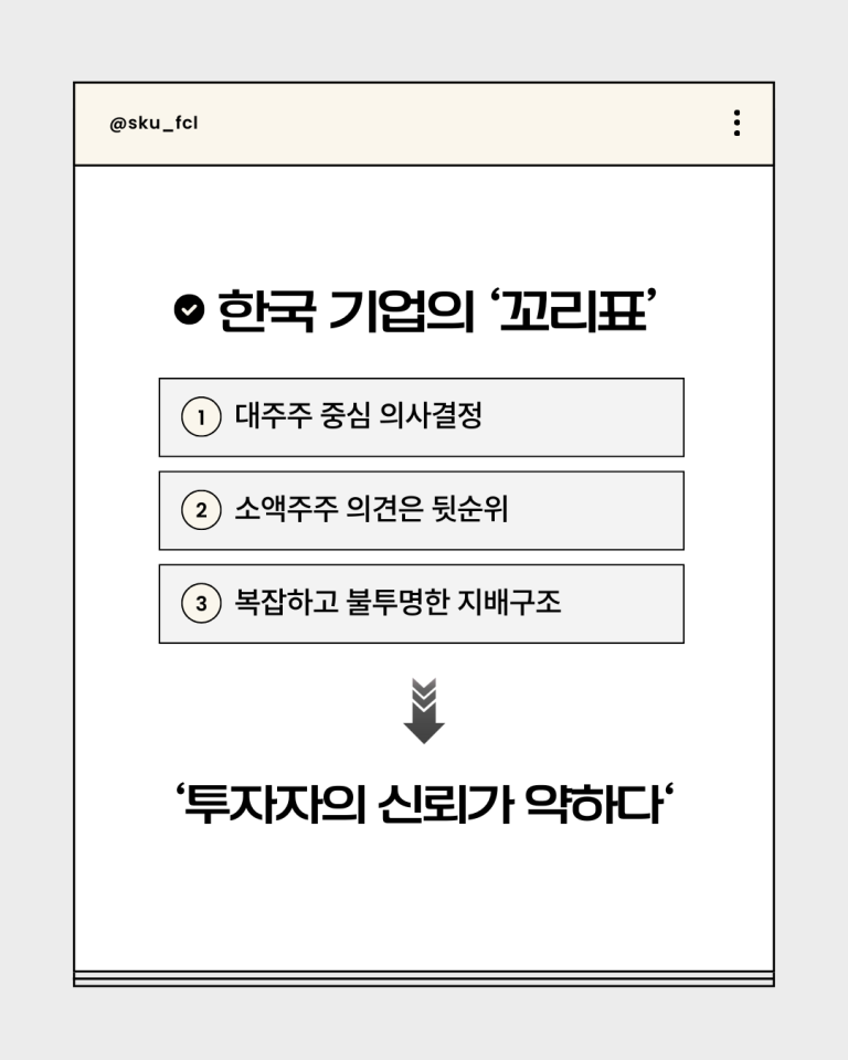 대주주 중심 의사결정, 소액주주 의견이 뒤로 밀리는 구조,