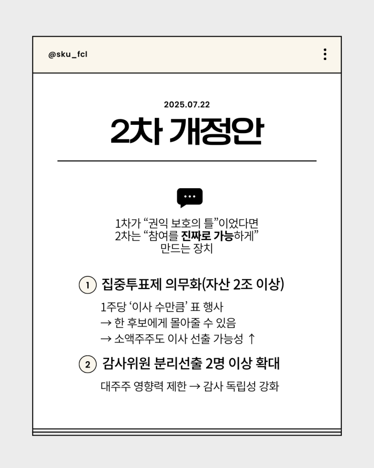 이사회 책임 강화와 소액주주 권리 강화를 통해 시장 신뢰를 높이려는 움직임이에요.
