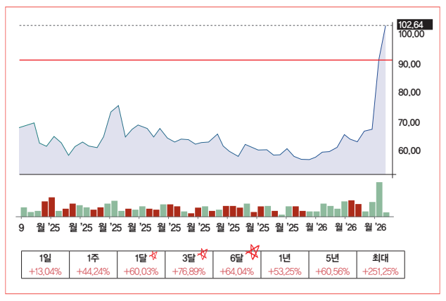 <최근 1개월, 3개월, 6개월 유가 상승률>